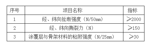 2、涂覆布的物理機械性能如表所示: