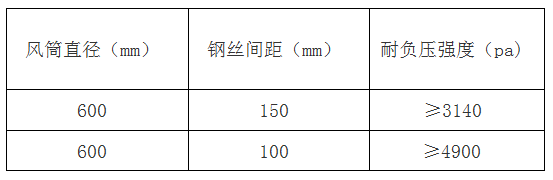 四、風筒耐負壓性能 風筒進行耐負壓試驗時,其值應(yīng)符合下表:
